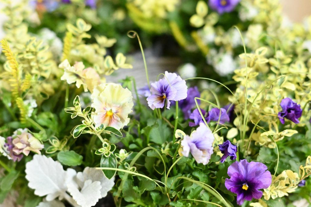 ゲブラさんのビオラを使った「あおき式寄せ植えフラワーリース」 レンタル予約開始します。